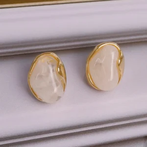 Deslumbra con estos elegantes aretes ovalados que combinan nácar blanco con un delicado marco en tono dorado. El diseño contemporáneo fusiona la suavidad natural del nácar con un acabado metálico brillante, creando una pieza versátil y sofisticada.