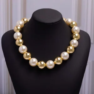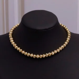Este exquisito collar de bolas doradas está diseñado para resaltar tu elegancia y sofisticación en cualquier ocasión. Hecho con materiales de alta calidad, su diseño clásico y refinado lo convierte en el accesorio perfecto para eventos formales o para dar un toque de lujo a tus looks diarios.